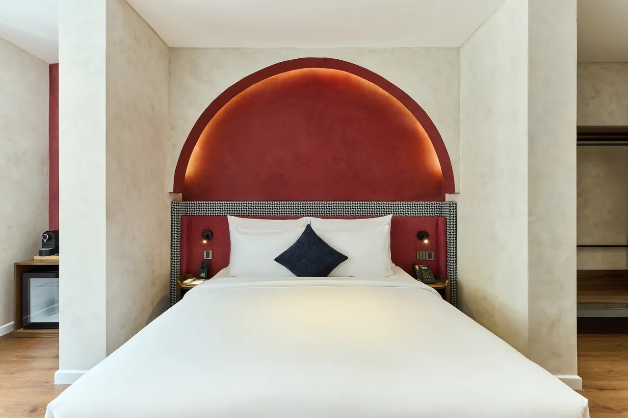 • Couples looking for a city escape that balances romance (the wine-red palette, the intimate spaces) with sophistication.
