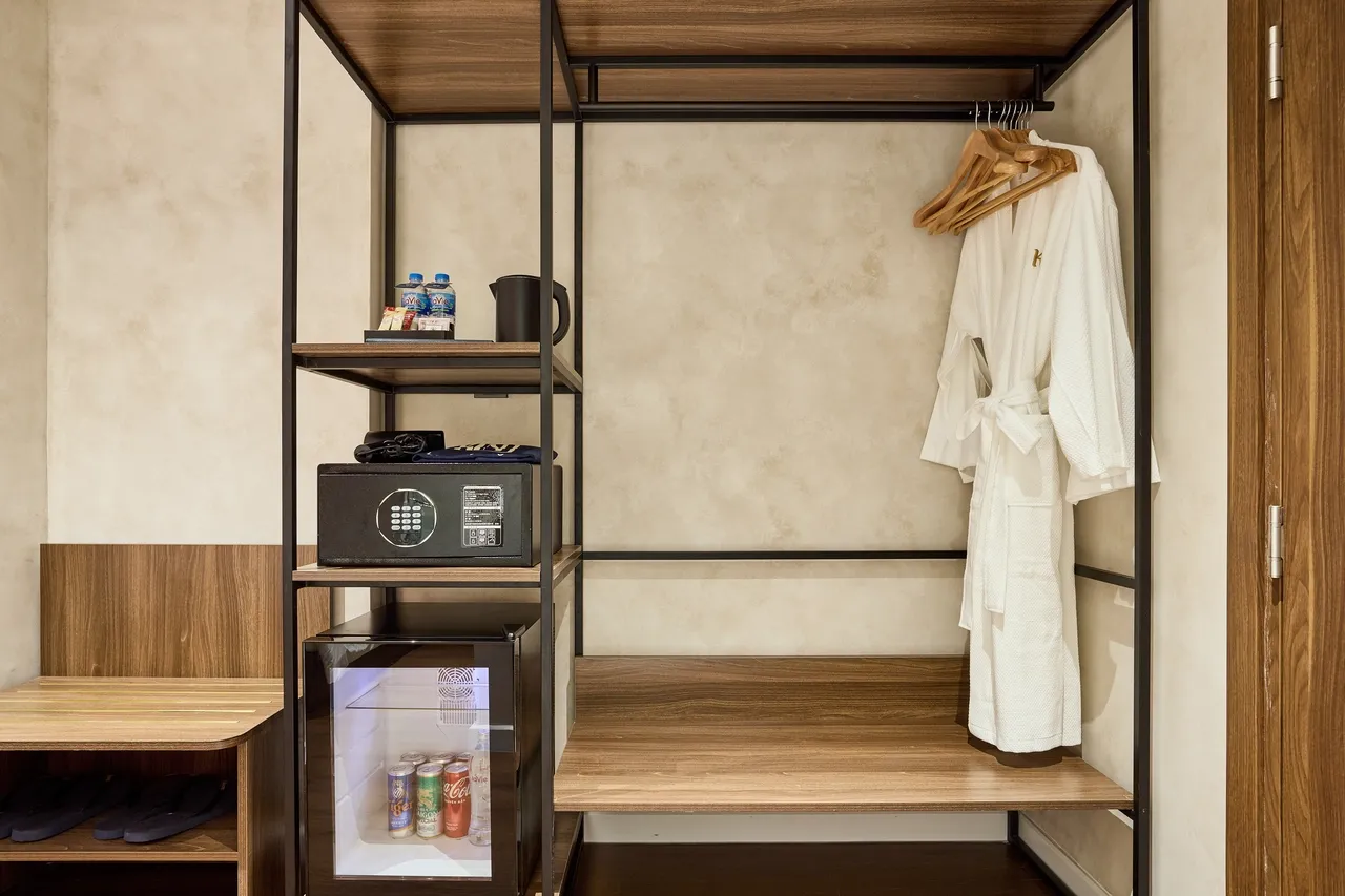 Each room has thoughtful details: a freestanding bathtub in select units, soft lighting, a workspace with a desk, minibar, quality toiletries, and sound-insulated walls so you barely hear the street outside. Not glamour for glamour’s sake, but comfort, elegance, tempering the city’s energy rather than competing with it.